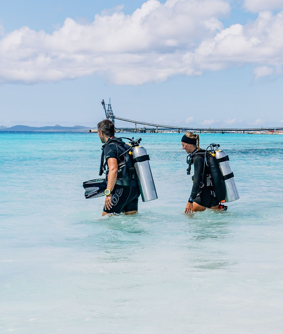 Haal je duikflessen en uitrusting op bij de handige drive-through duikshop op Delfins Beach Resort en ga op pad om de legendarische duikplekken van Bonaire te ontdekken. Geen boten en geen strak schema, alleen jij, je buddy en de vrijheid van de kustroute.