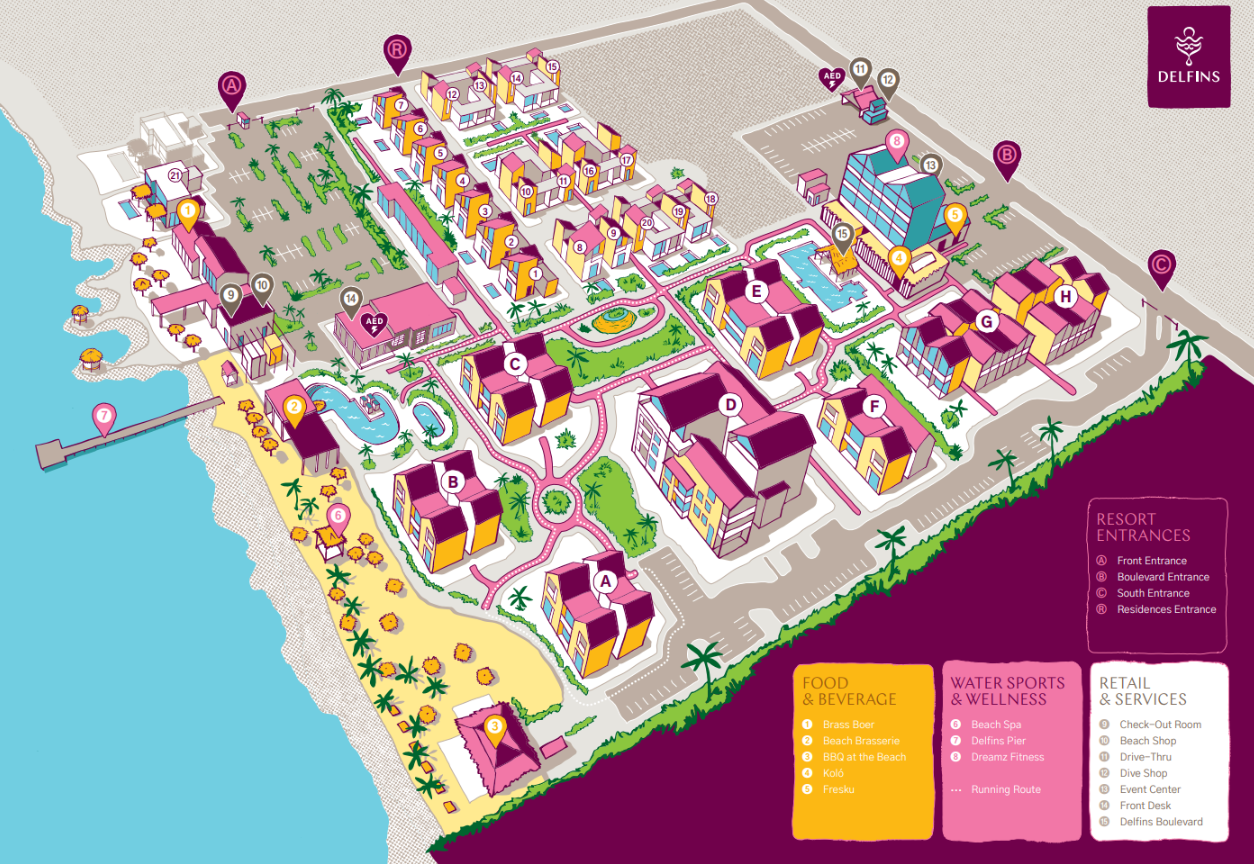 Beleef een onvergetelijk verblijf bij Delfins. Wandel door onze tropische tuinen of relax op de Delfins Pier. Duik in een van onze verfrissende magnesiumzwembaden of geniet van Delfins Beach, ons privéstrand. Geniet van culinaire hoogstandjes in onze vier restaurants en ontdek unieke items in onze twee winkels. Vergeet niet de diverse evenementen en happenings op het resort te ervaren, voor een vakantie vol plezier en ontspanning.